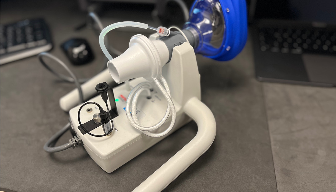 Instrumento ergonómico que cuenta con una máscara que capta la voz para luego analizarla y mostrar diferentes índices a través de su software.